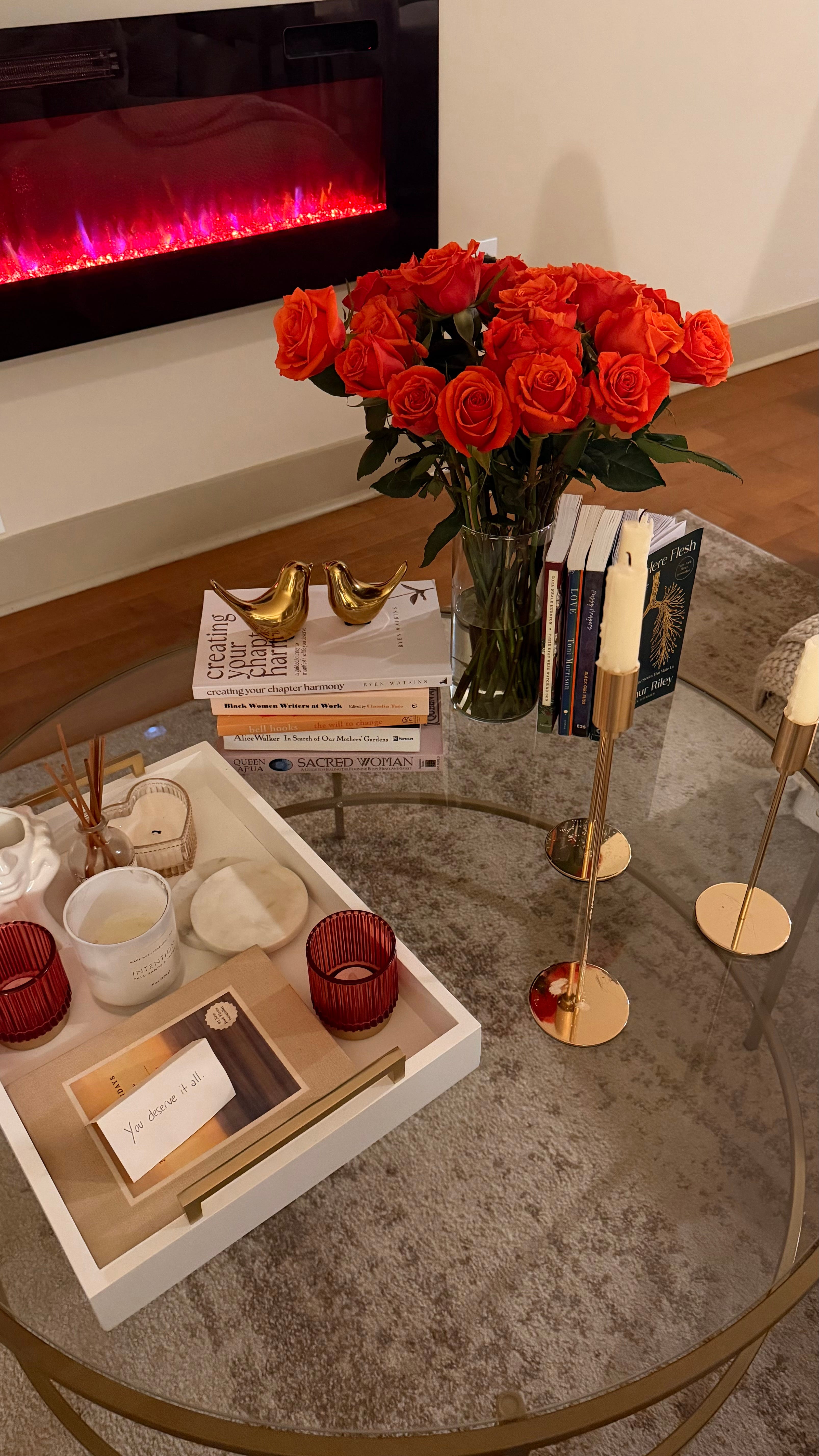 I climb out of bed for a second and take the book to my living room, admiring my bright roses that bring light to the dim apartment. I reorganized my coffee table with my debut book as the new centerpiece. “Wow,” I think to myself. Rest made this possible.